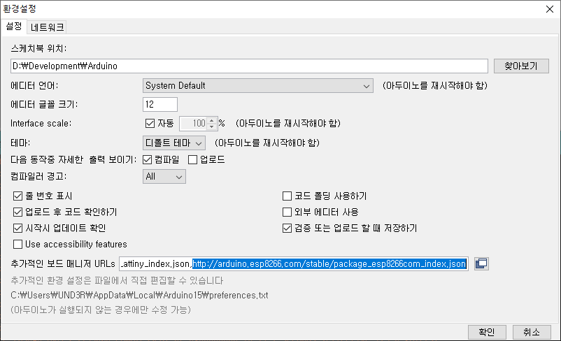 그 뒤 '보드 매니저'에 들어가서 esp8266 으로 검색되는 것을 설치한다. 글을 쓰고있는 현재기준 3.0.2 가 최신버전.