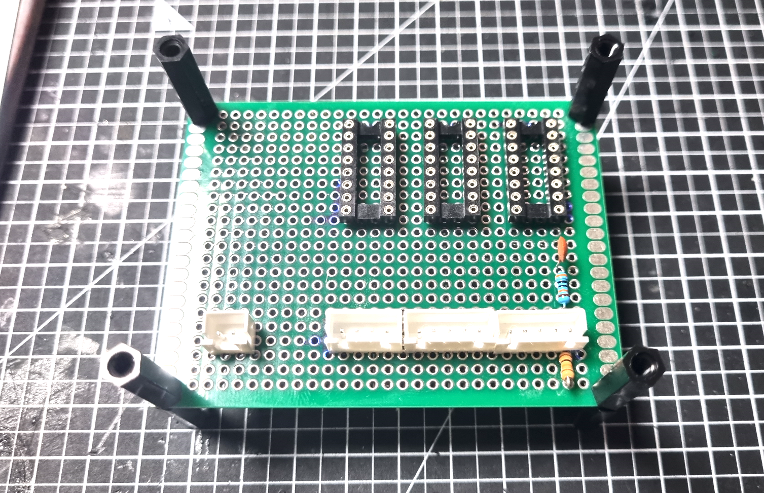 먼저 주요 소자를 위한 자리를 잡아 주었다. 바로 소자를 기판에 붙일 수도 있겠지만, 혹시라도 제거하고 다시 해야 하는 최악의 상황을 위해서 소켓을 붙여 주었다. 언제든지 제거할 수 있도록 :)